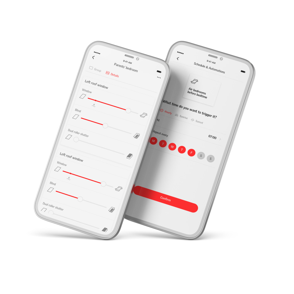VELUX App Control poskytuje úplnú kontrolu nad všetkými vašimi produktmi VELUX priamo z telefónu. Otvárajte a zatvárajte strešné okná, rolety a vonkajšie rolety na elektrický alebo solárny pohon jediným potiahnutím prsta po displeji alebo zoskupte svoje produkty VELUX a robte veci ešte pohodlnejšie.